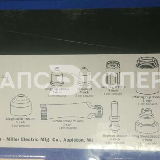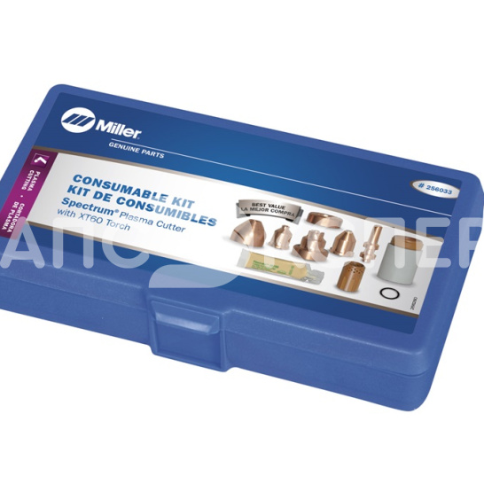 Набор расходных частей XT60 для плазменной резки Miller Electric (артикул 256033) — комплексное решение для обслуживания плазмотронов серии XT60. Набор включает компоненты для резки, строжки и технического обслуживания: 3 электрода, 3 сопла 60А, защитный экран для контактной резки, дефлектор, уплотнительное кольцо, завихритель, фиксирующую чашку, сопло для строжки 60А, экран для строжки и тюбик силиконовой смазки.
